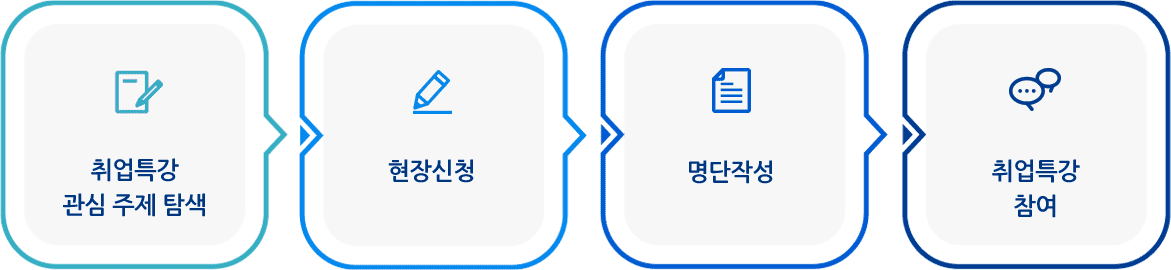 진로·진학 및 구직역량 강화 등을 위한 취업특강은 현장신청을 통해 이용 가능합니다.