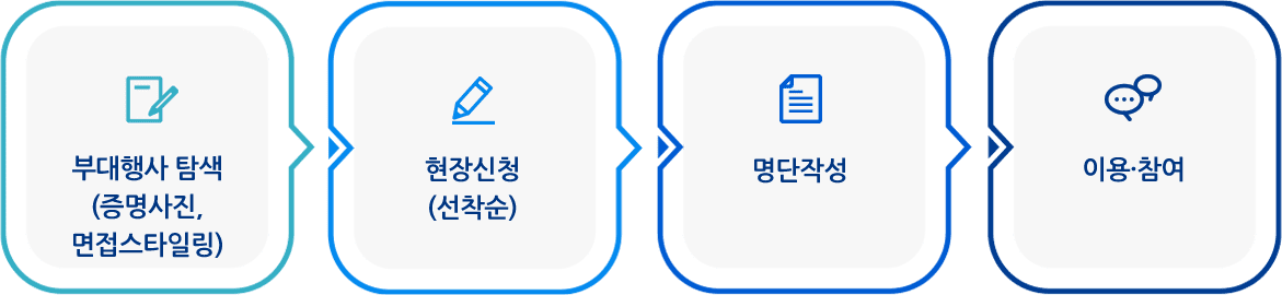 부대행사는 현장신청을 통해 이용 가능하며, 선착순으로 신청 가능합니다.